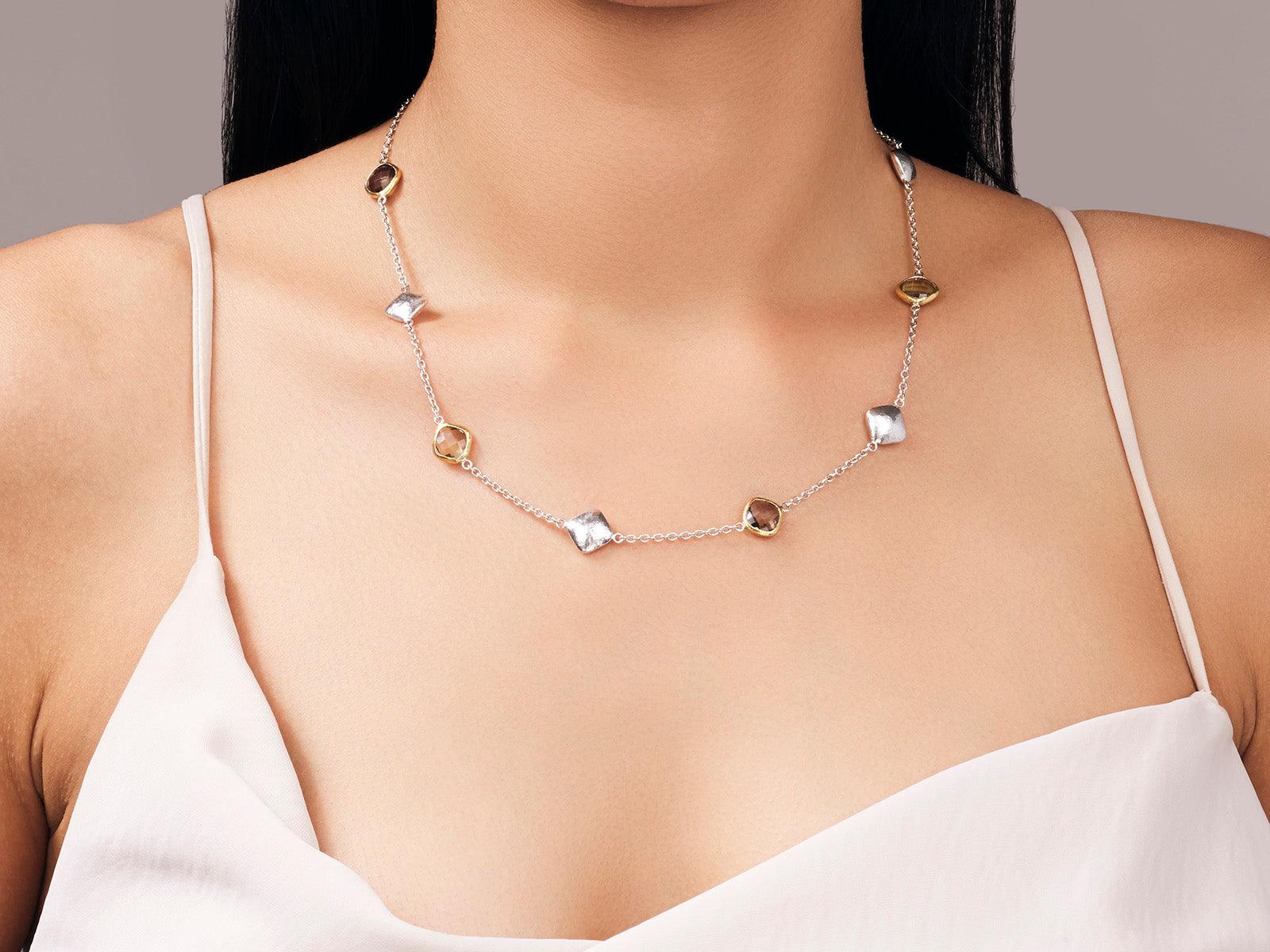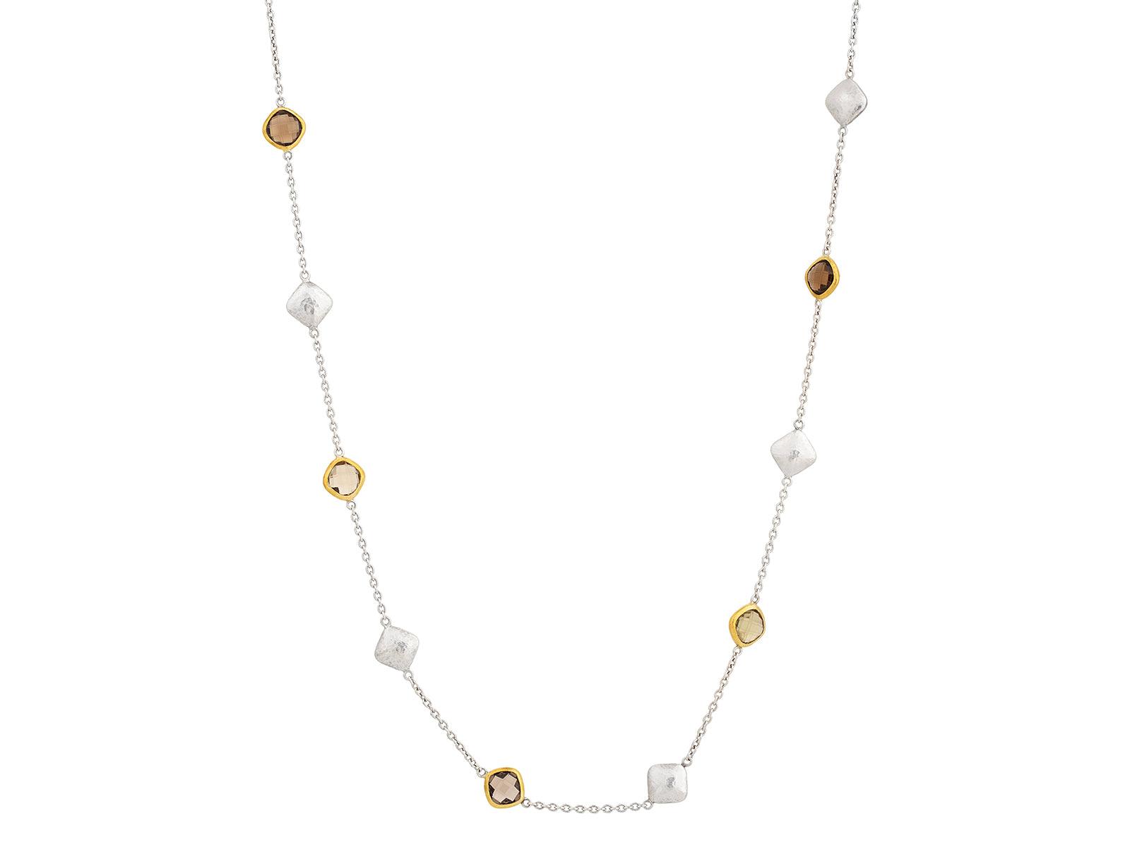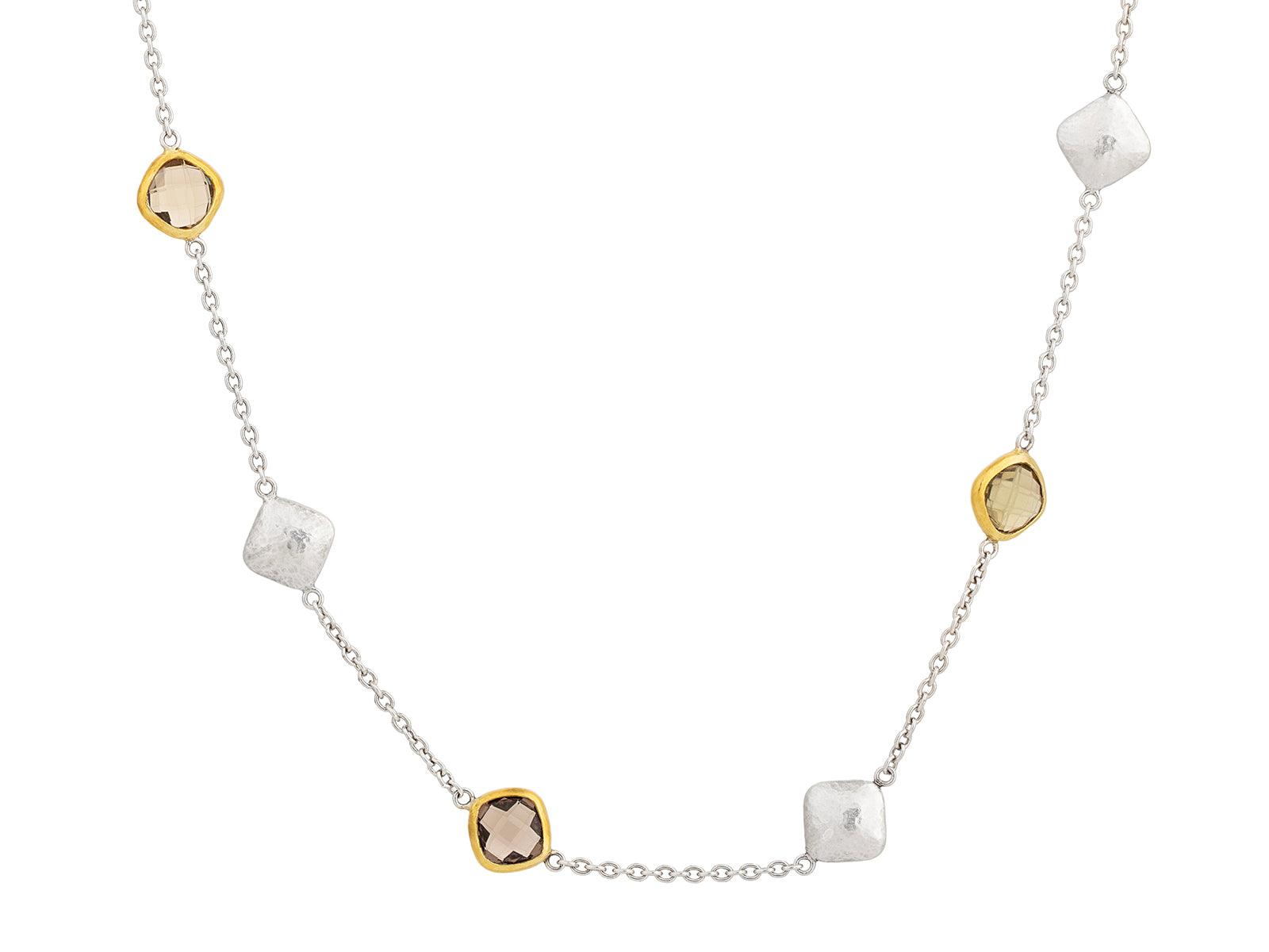 GURHAN Spell Sterling Silver Quartz Station Short Necklace, Mixed Shapes on Thin Chain, Gold Accents