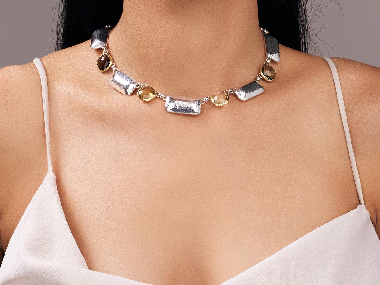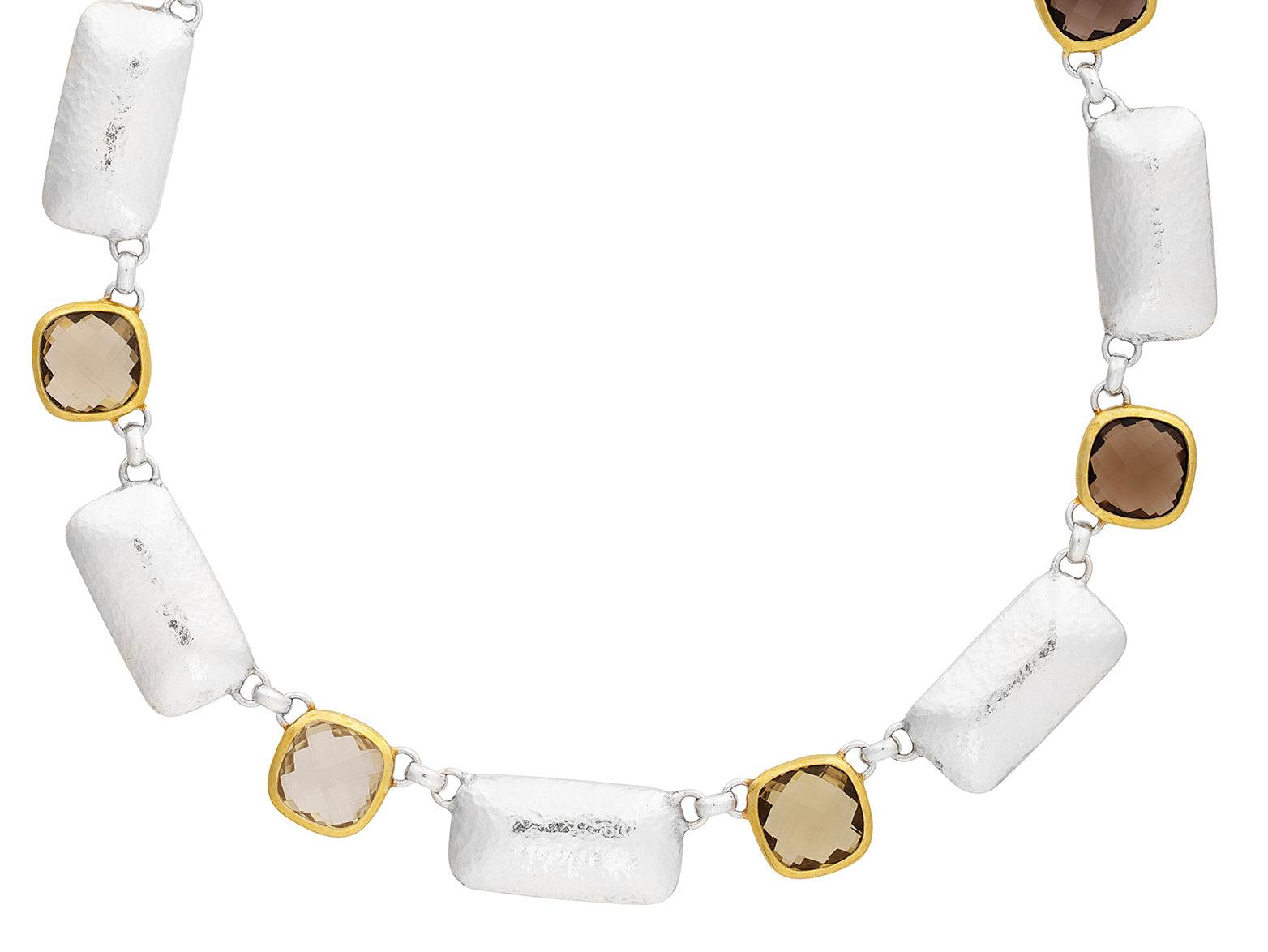 GURHAN Galapagos Sterling Silver Quartz All Around Short Necklace, Alternating Square and Rectangle Stations, Gold Accents