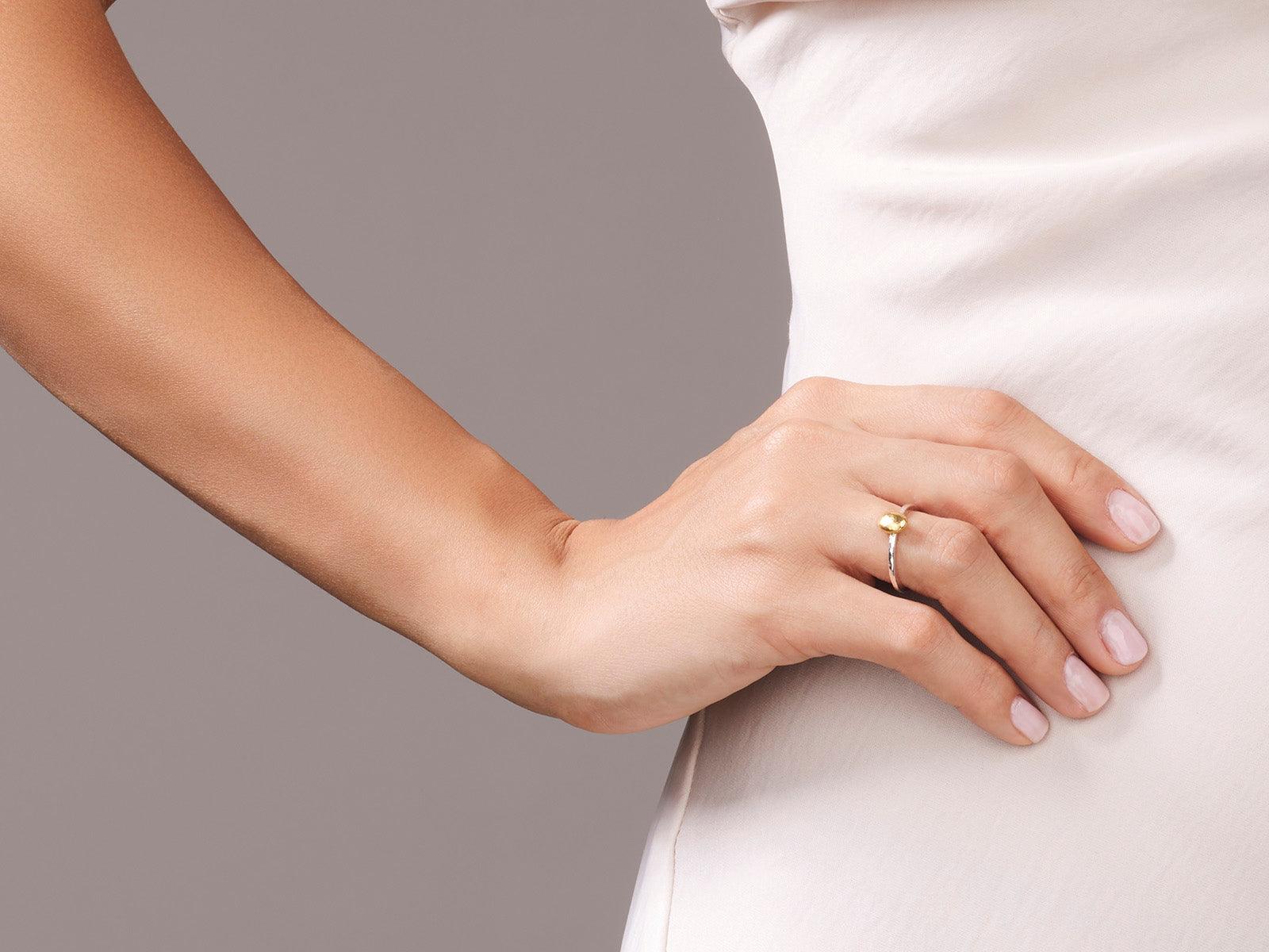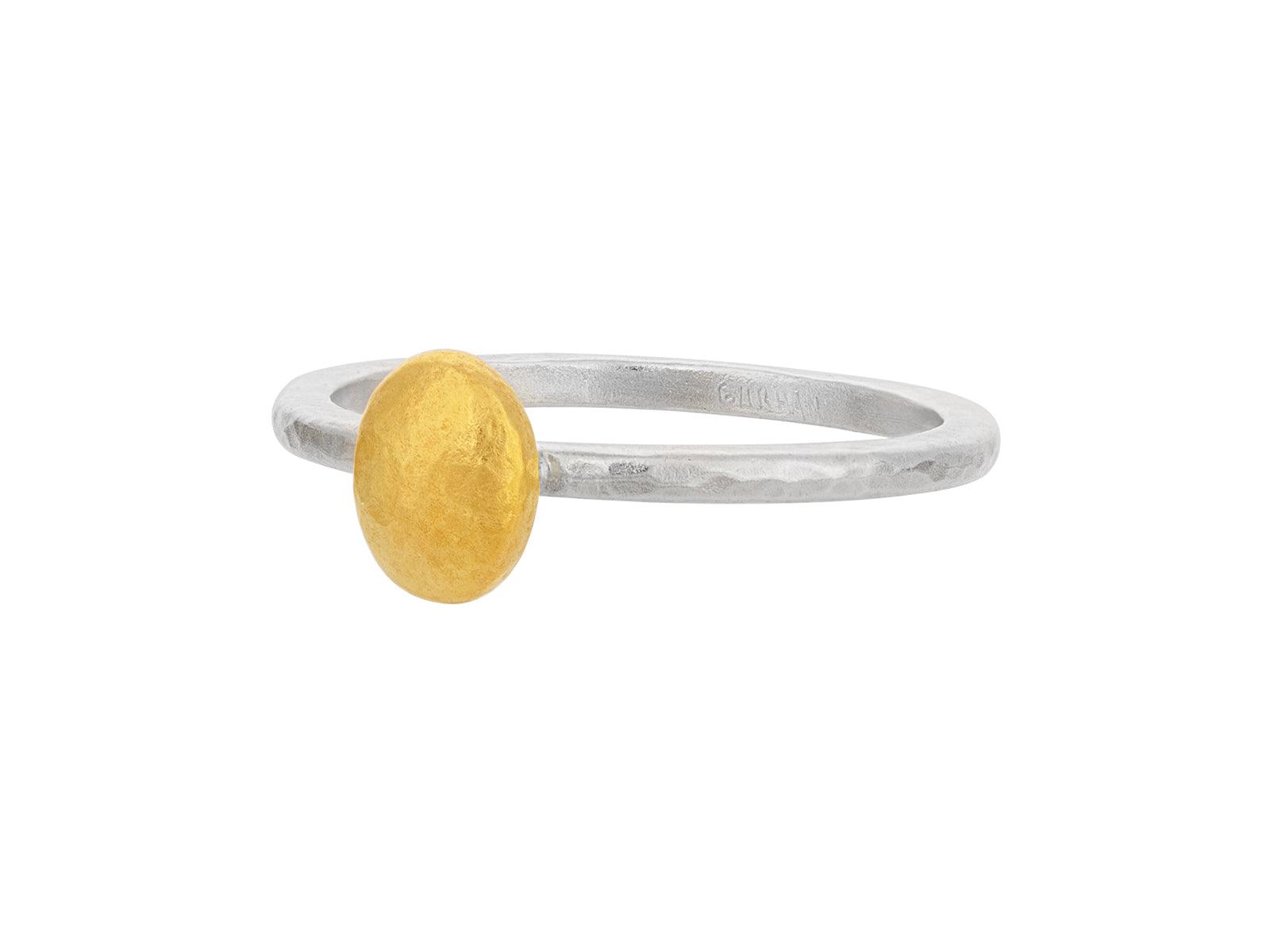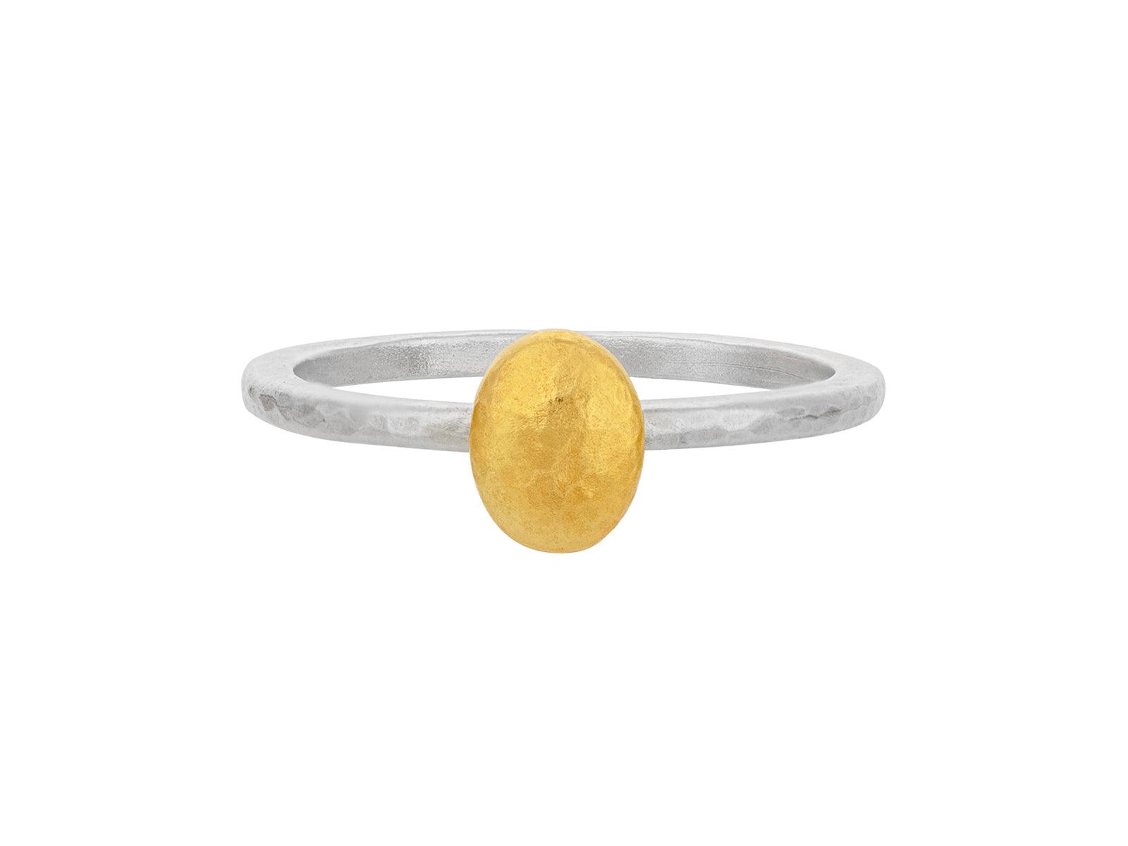 GURHAN Spell Sterling Silver Stacking Ring, 7x5mm Oval, Gold Accents