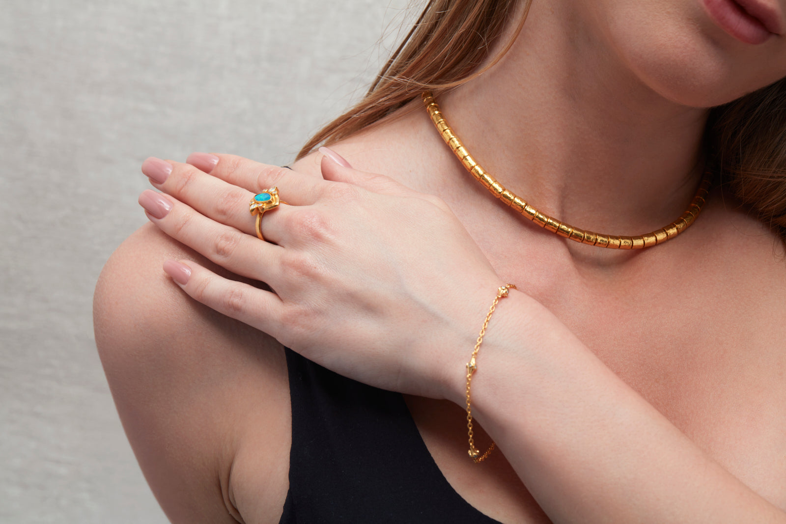 Pure gold is a soft, malleable metal and so Just like the ancient goldsmiths who used grains, sand and wood to provide structural integrity to their pieces, Gurhan uses today's versions of these substances to enable the hollow forms, like balls and lentils, ring shanks and large links, to retain their intended shapes. If a piece is made with either air or an organic filler inside, we denote it as 'hollow' so that you always know what you are buying. See our Quality Standards.