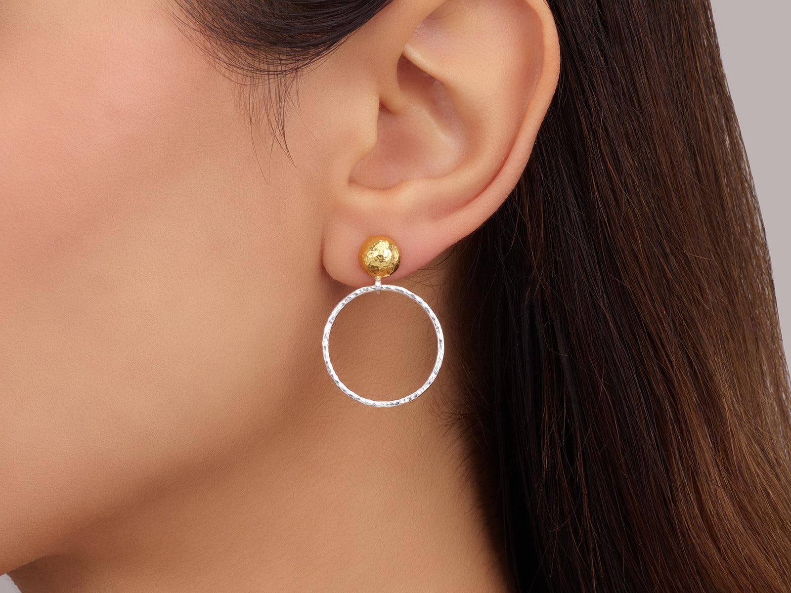 GURHAN Hoopla Sterling Silver Single Drop Earrings, 20mm Round on Post Top, Gold Accents