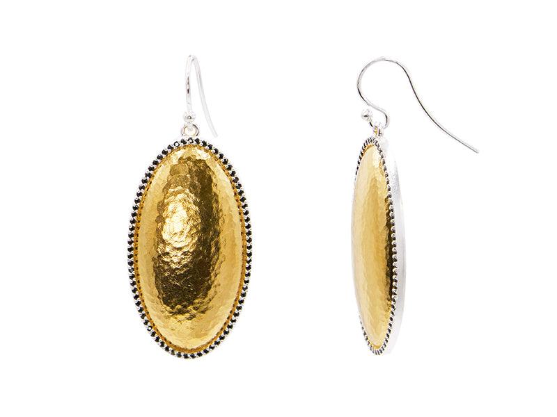 GURHAN Panther Sterling Silver Onyx Single Drop Earrings, 38mm Oval on Wire Hook, Gold Accents
