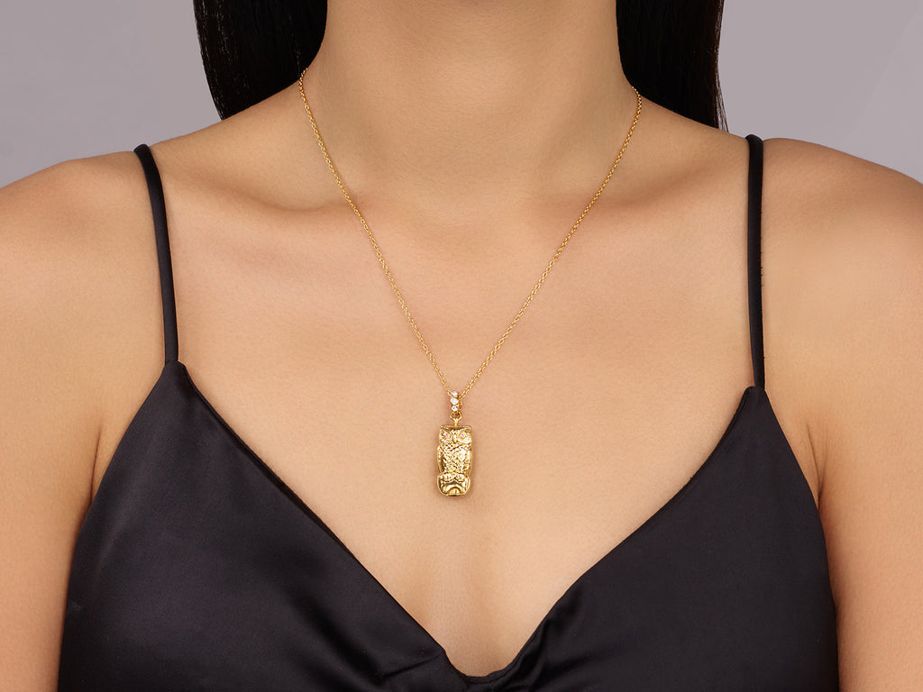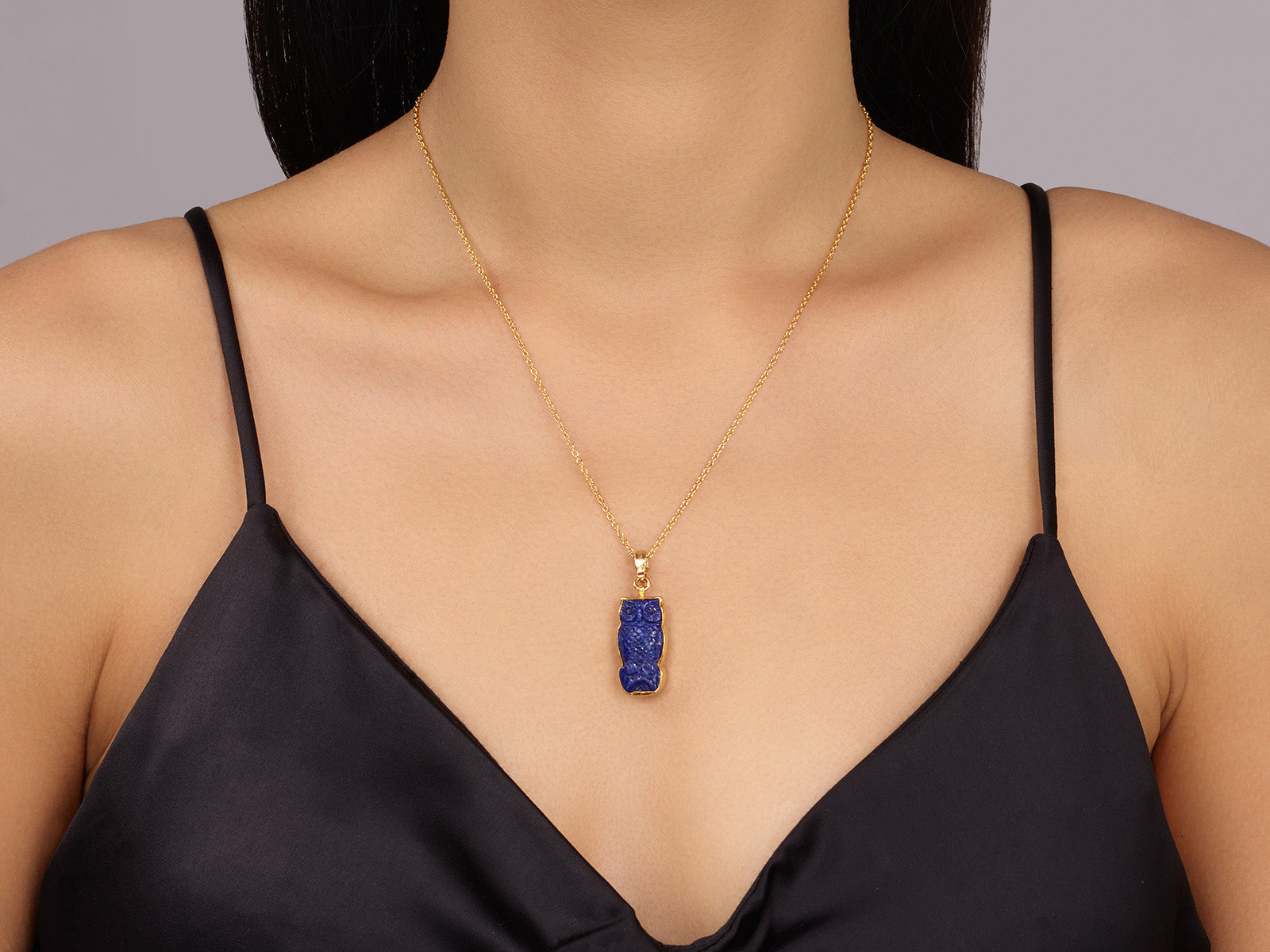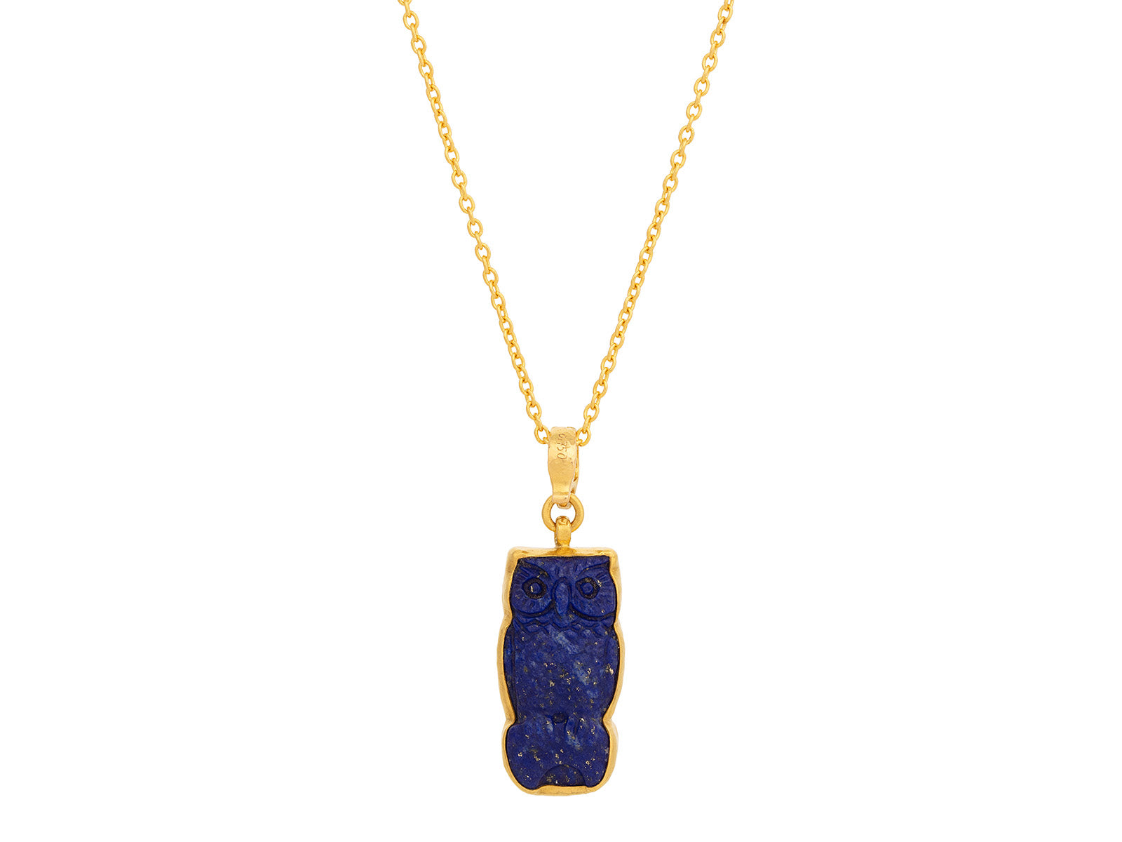 GURHAN Rune Gold Lapis Pendant Short Necklace, 24x12mm Carved Owl