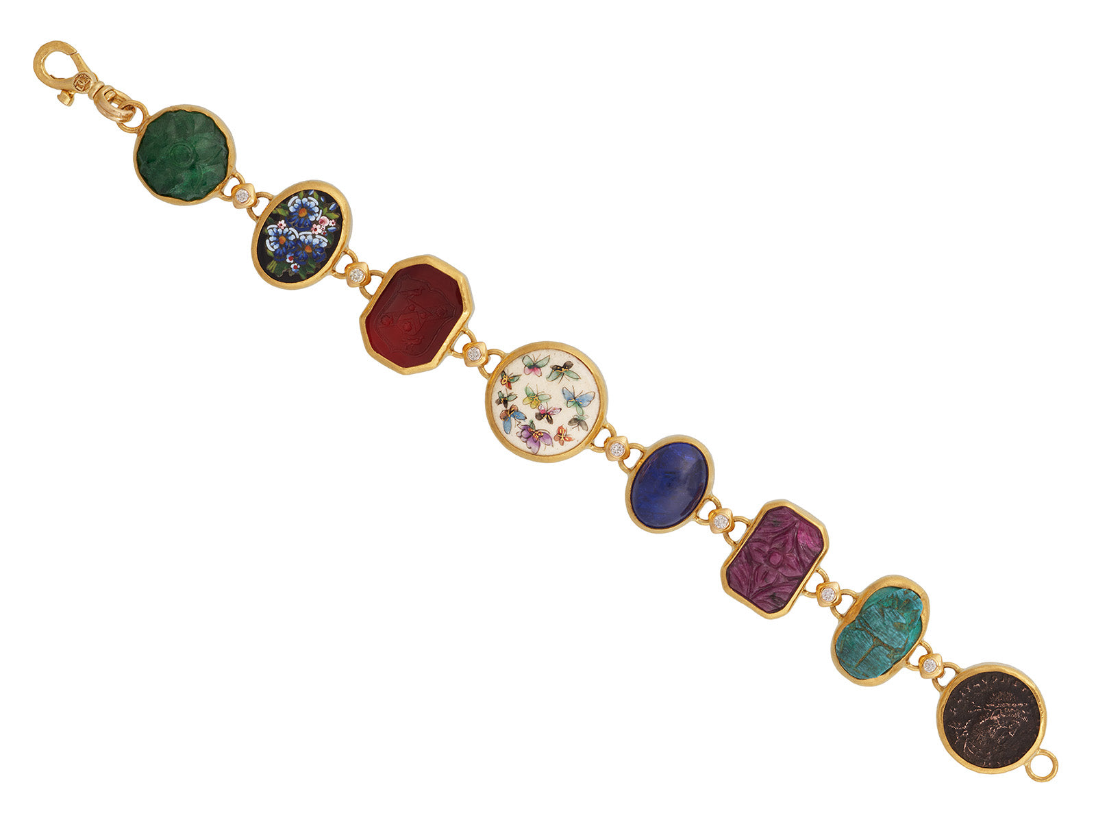 GURHAN Antiquities Gold Multi-Stone All Around Single-Strand Bracelet, Mixed Artifacts and Stones