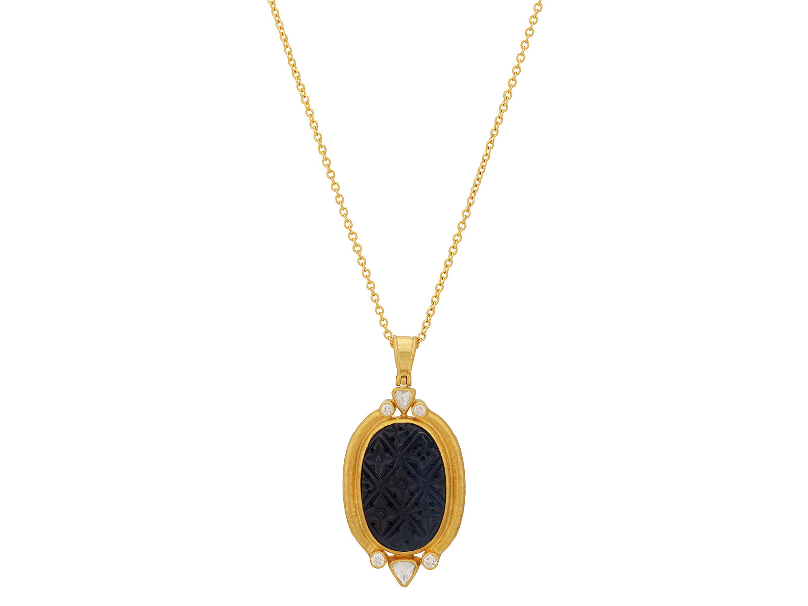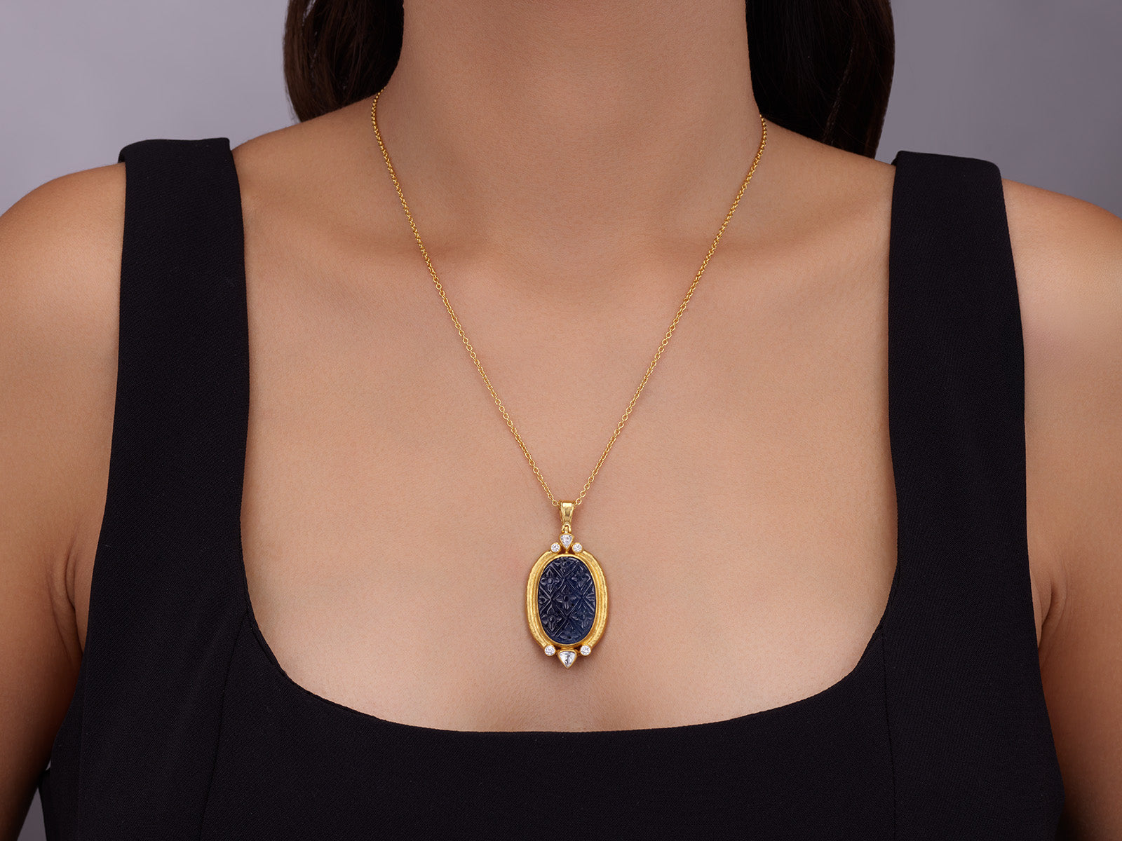 GURHAN Muse Gold Sapphire Pendant Necklace, 25x17mm Carved Flower Sapphire