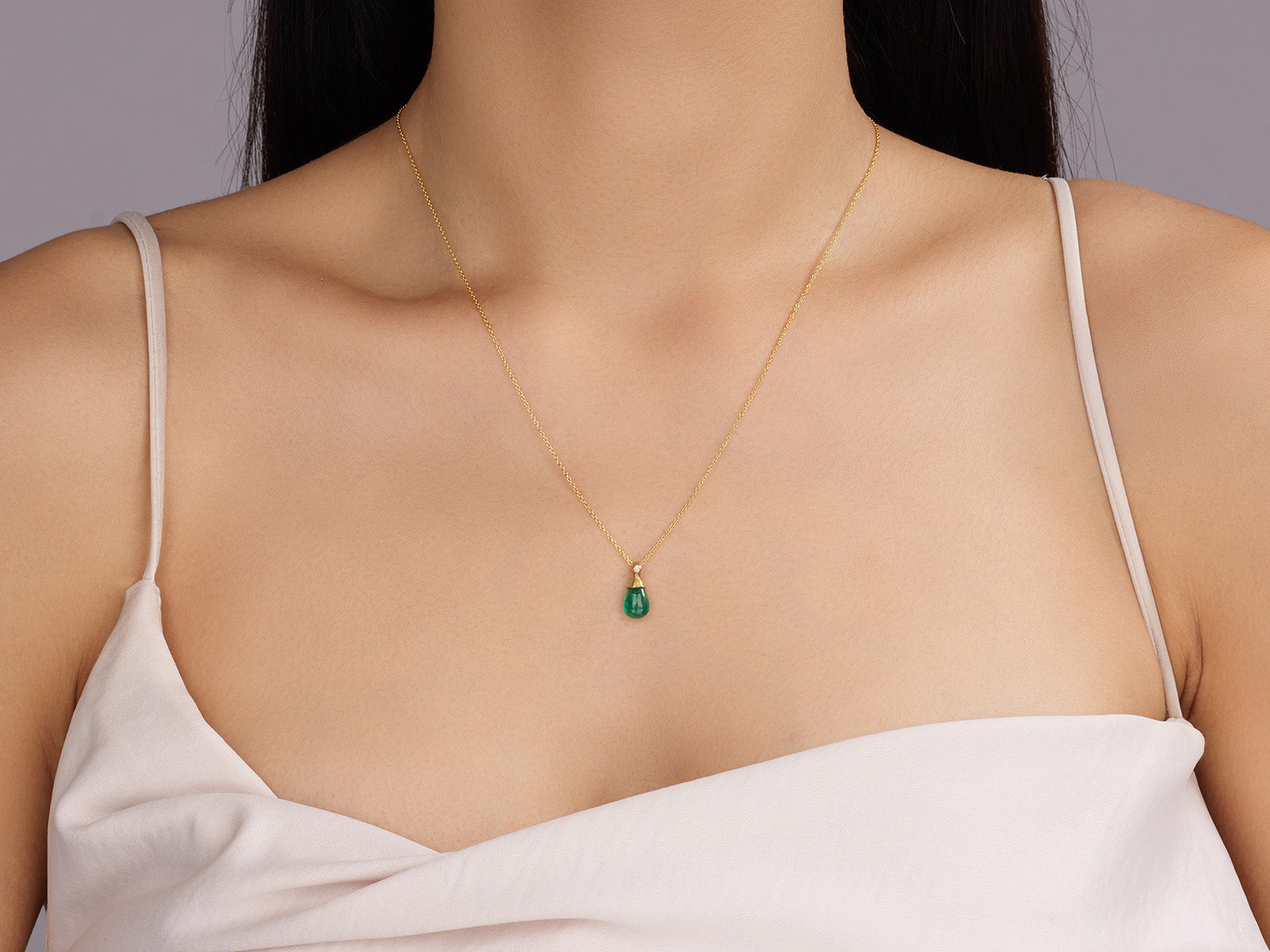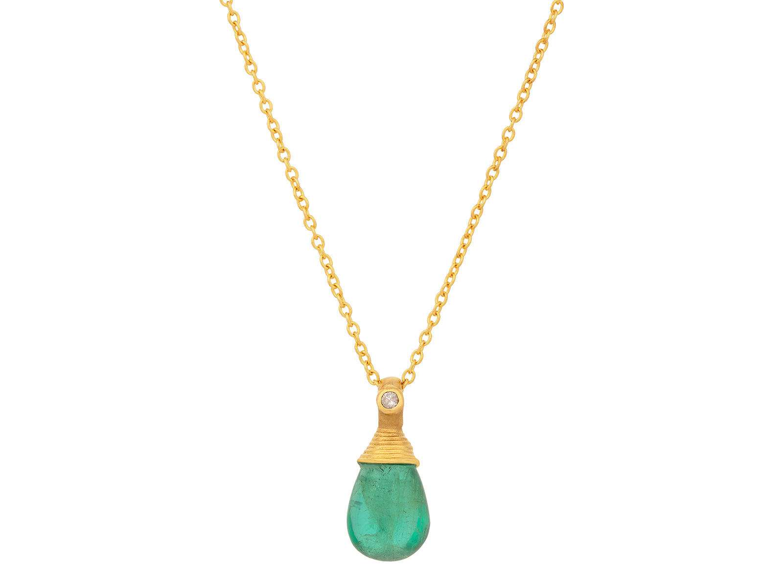 GURHAN Crown One-of-a-Kind 24K Gold Emerald Pendant Necklace, 10x5mm Teardrop