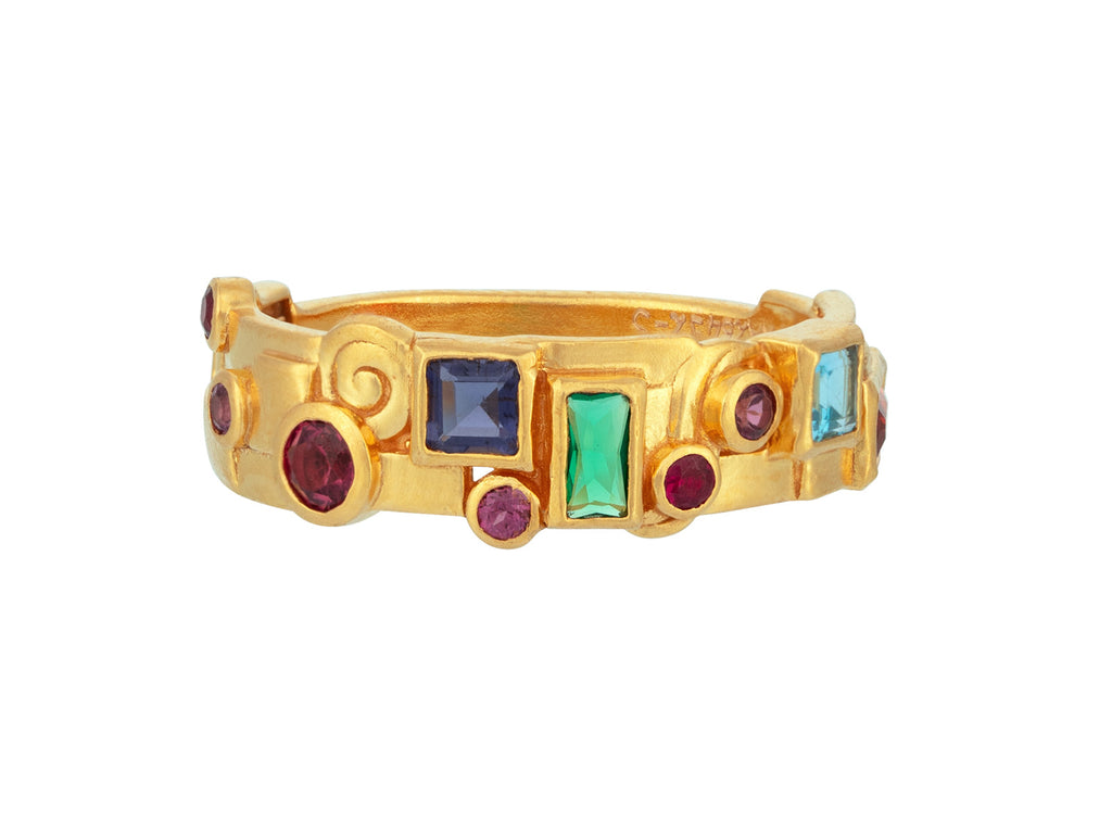 GURHAN Embrace Gold Mixed Stone Band Ring, 7mm Wide