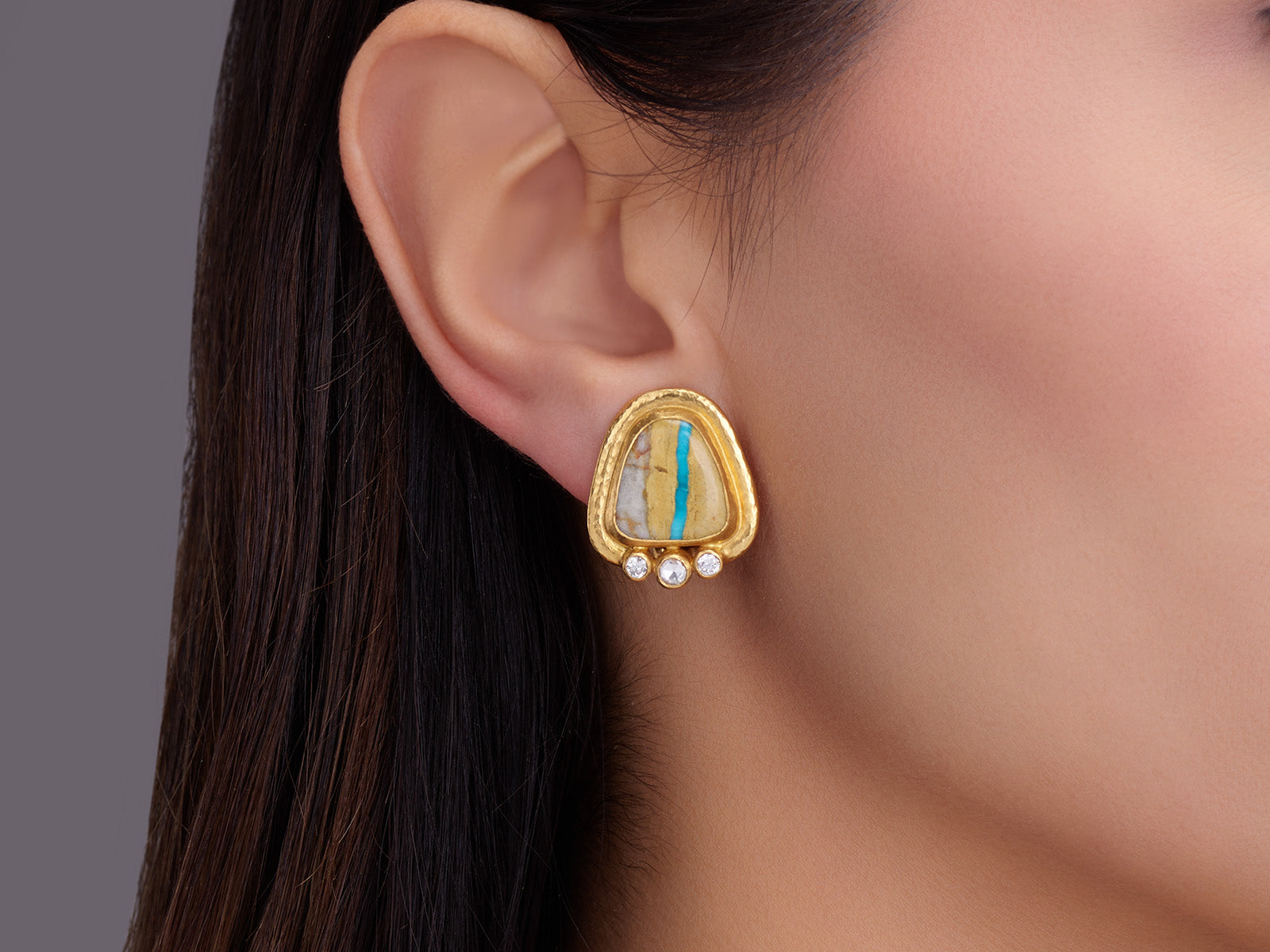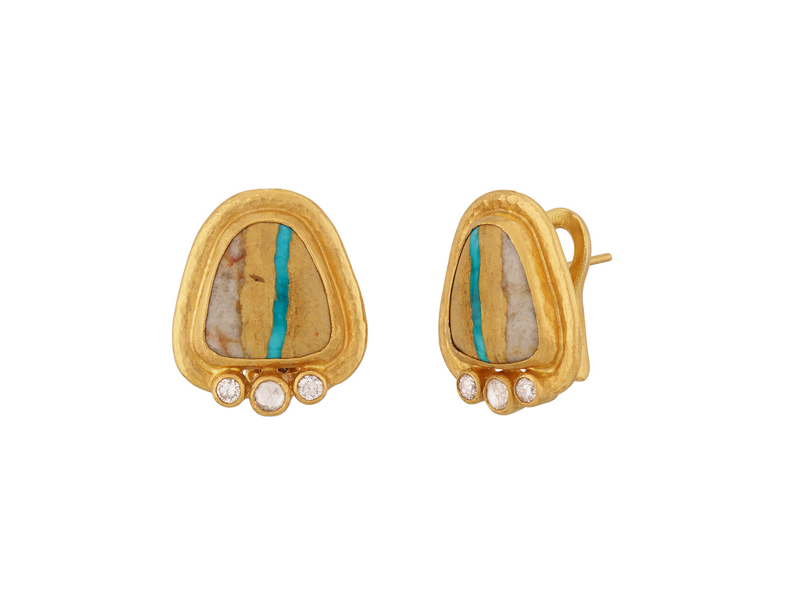 GURHAN Muse Gold Turquoise Clip Post Stud Earrings