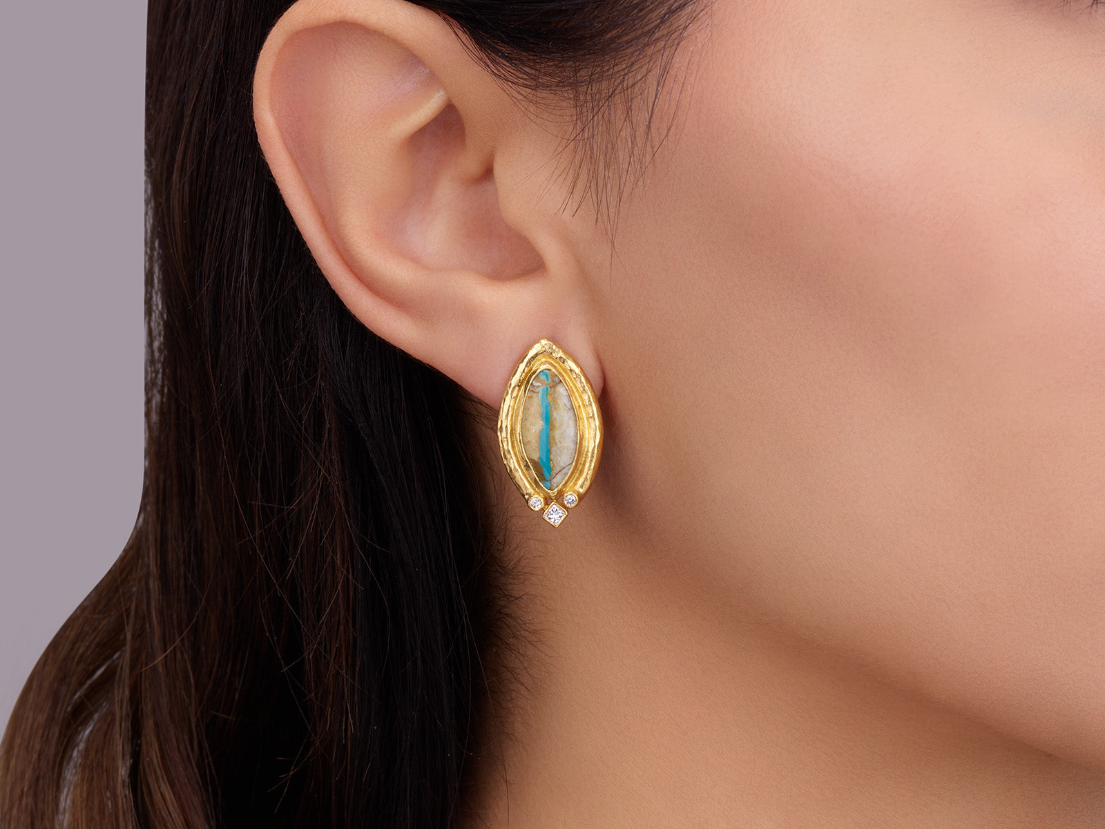 GURHAN Muse Gold Turquoise Clip Post Stud Earrings