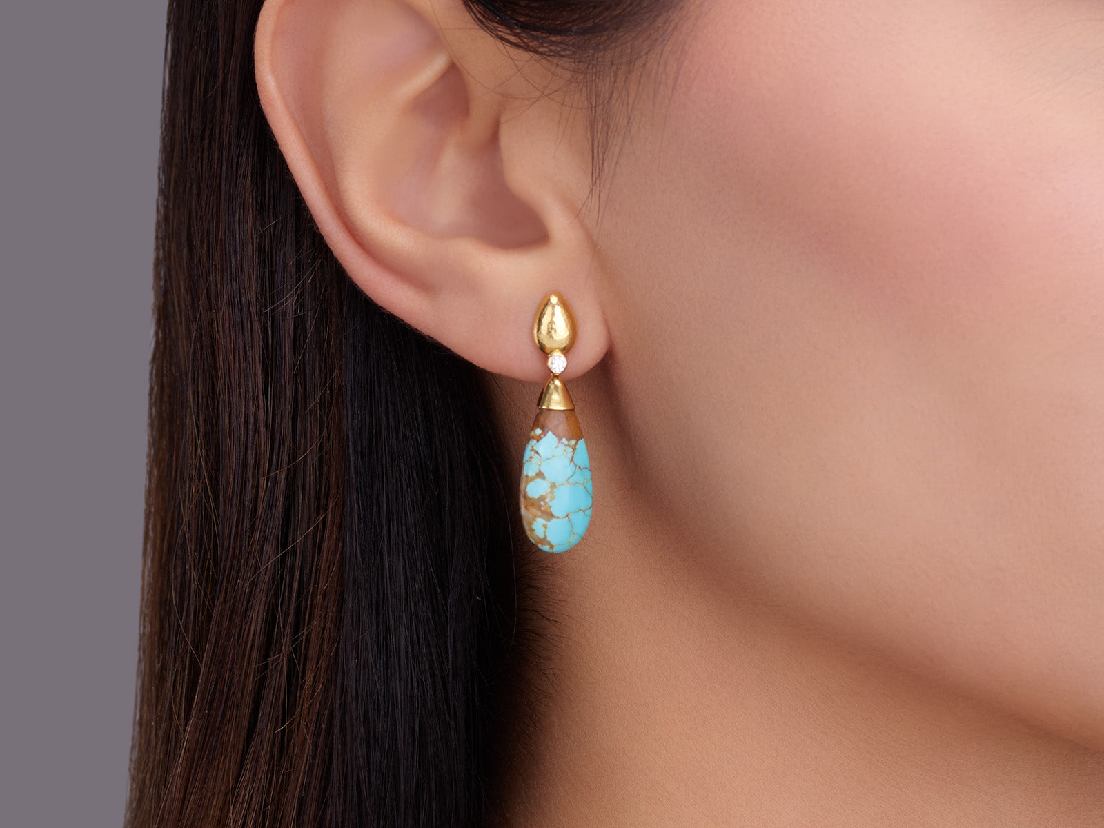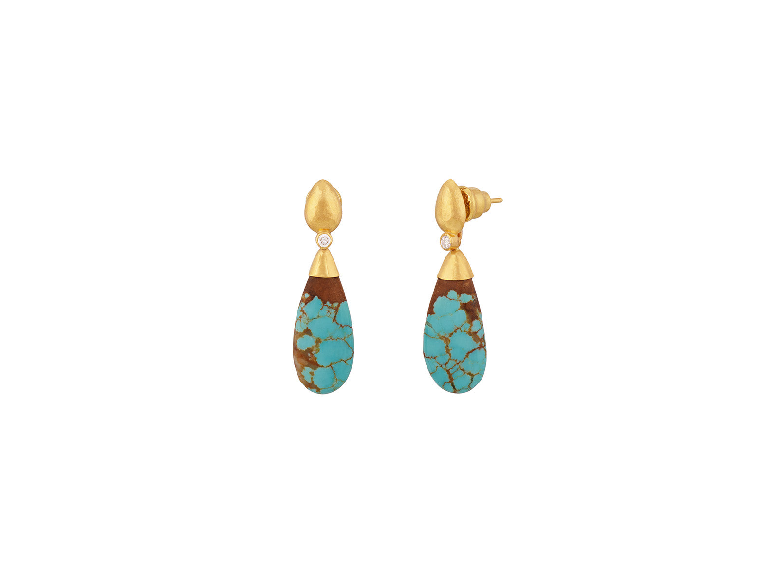 GURHAN Crown Gold Turquoise Single Drop Earrings