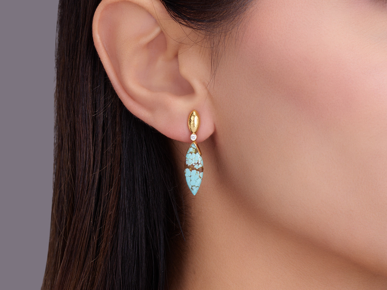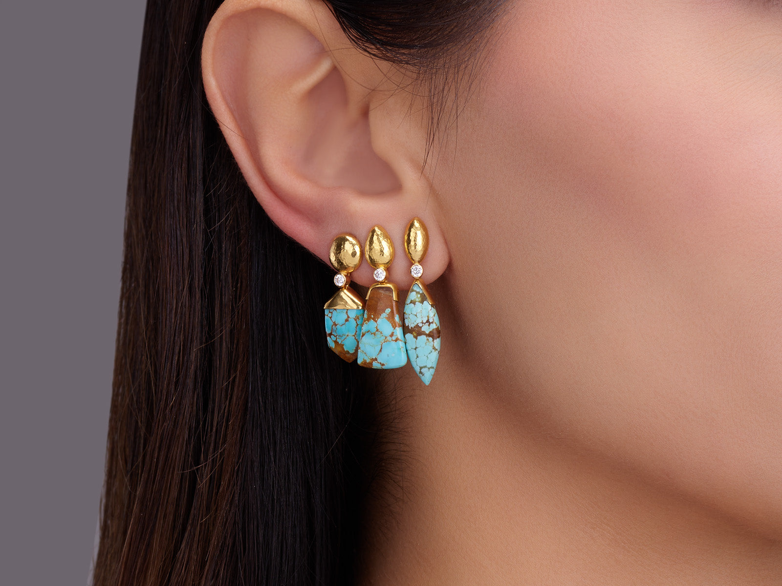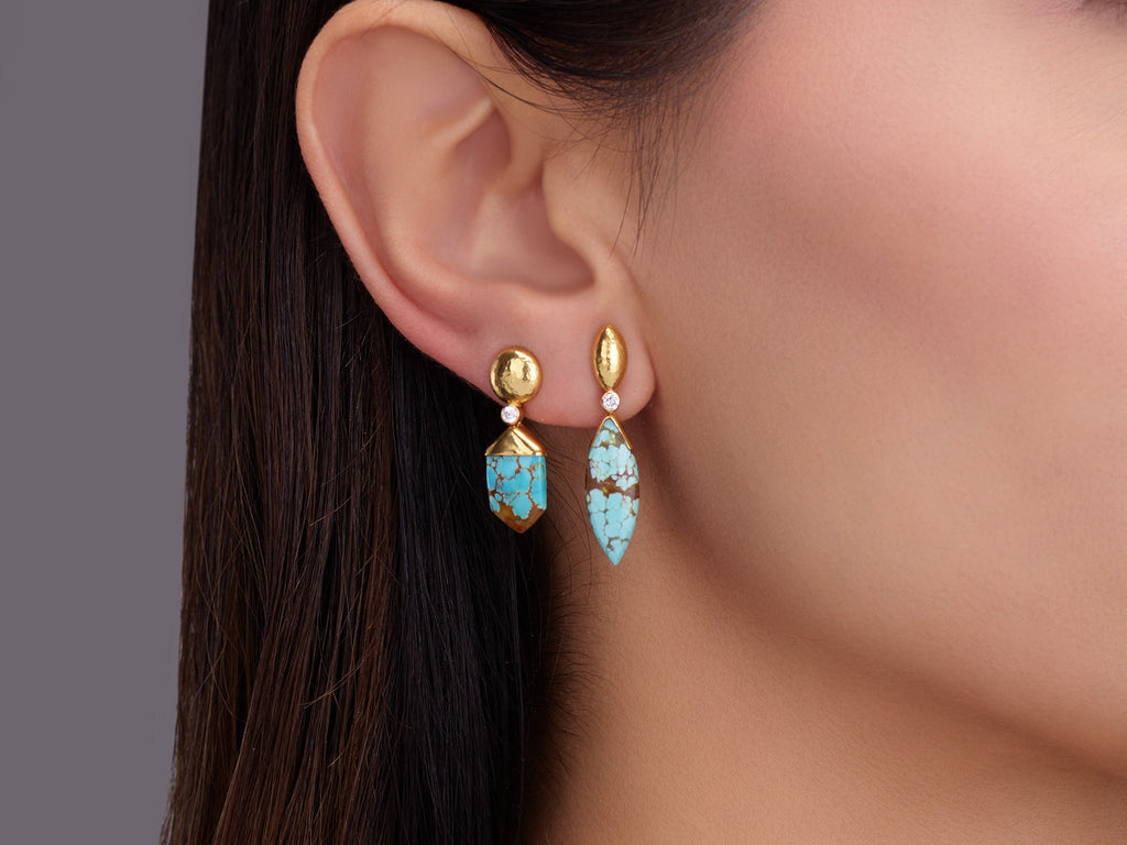 GURHAN Crown Gold Turquoise Single Drop Earrings