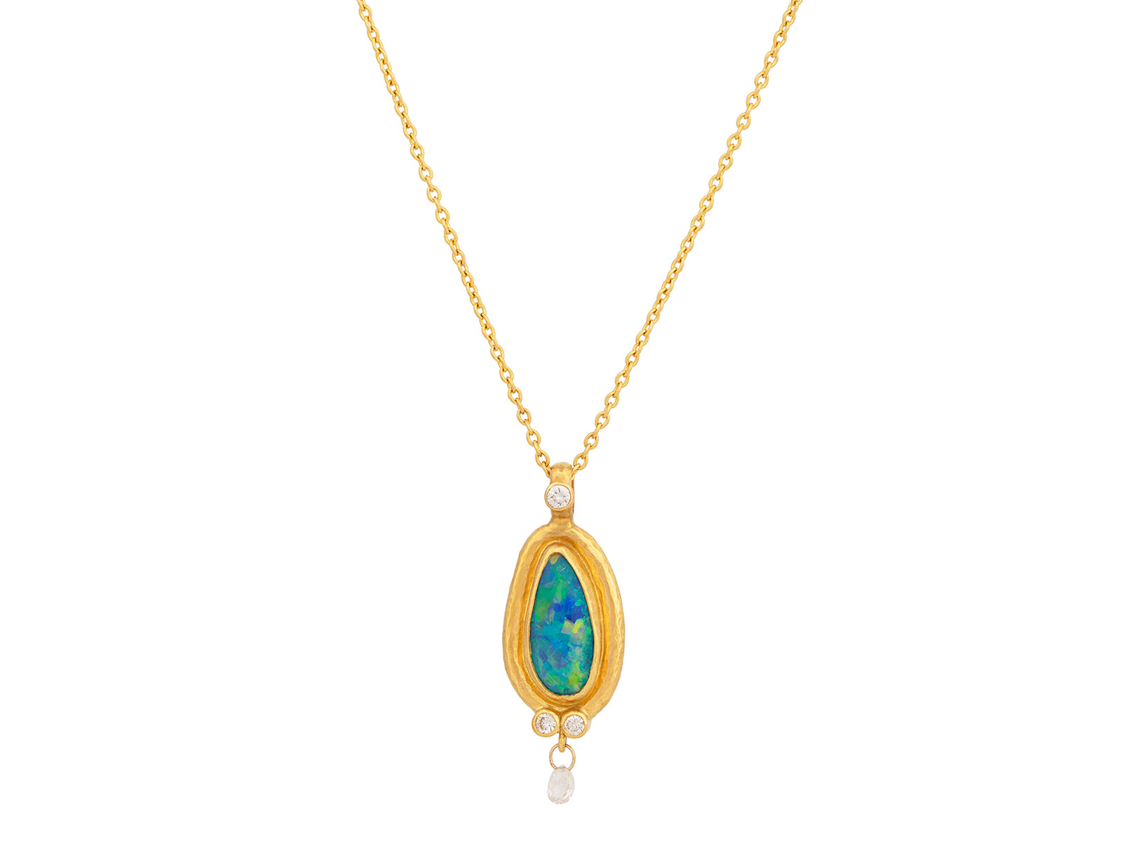 GURHAN Muse One-of-a-Kind 24K Gold Opal Pendant Necklace, 12x6mm Teardrop set in Wide Frame