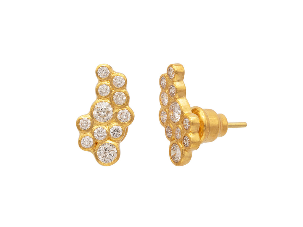 GURHAN Pointelle Gold Diamond Crawler Stud Earrings, 11-Stone Cluster