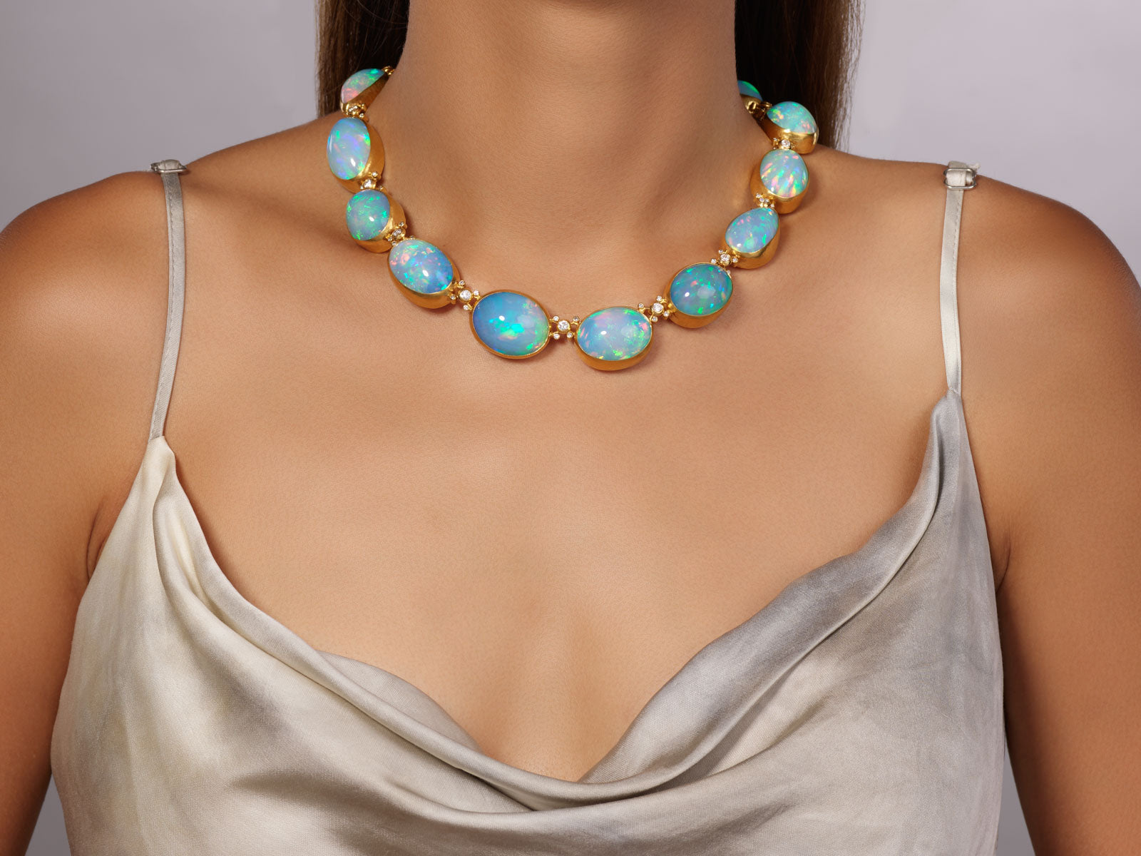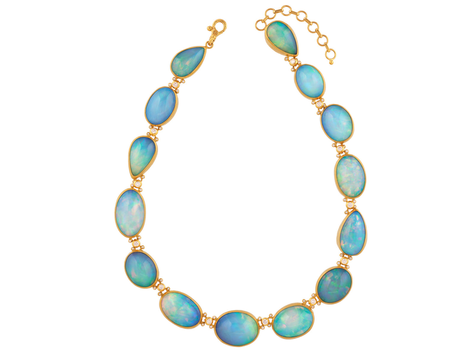 GURHAN Rune One-of-a-Kind 24K Gold Opal Rivière Link Necklace, Butterfly Diamond Links