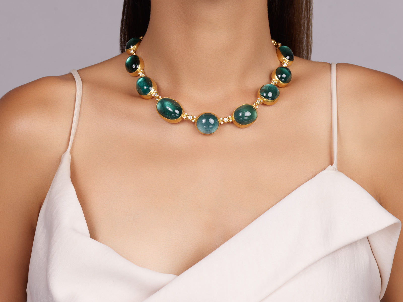 GURHAN Rune One-of-a-Kind 24K Gold Tourmaline Rivière Link Necklace, Butterfly Diamond Links