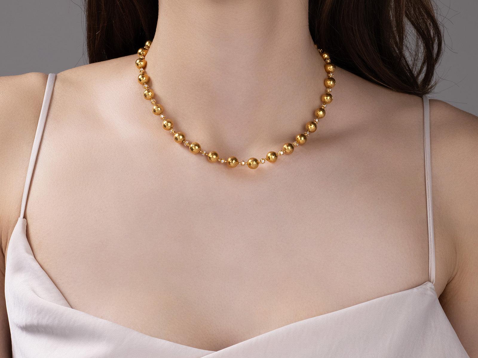 GURHAN Spell 24K Gold Diamond Statement Beaded Necklace, Hand-Hammered 8mm Balls
