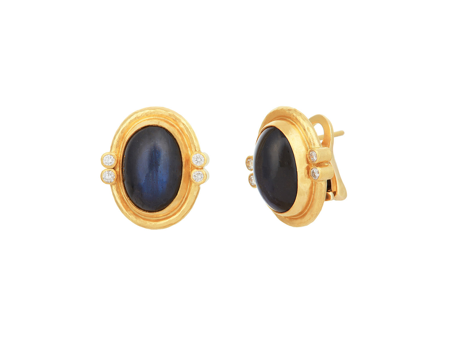 GURHAN Muse Gold Labradorite Stud Earrings, 15x11mm Oval set in Wide Frame