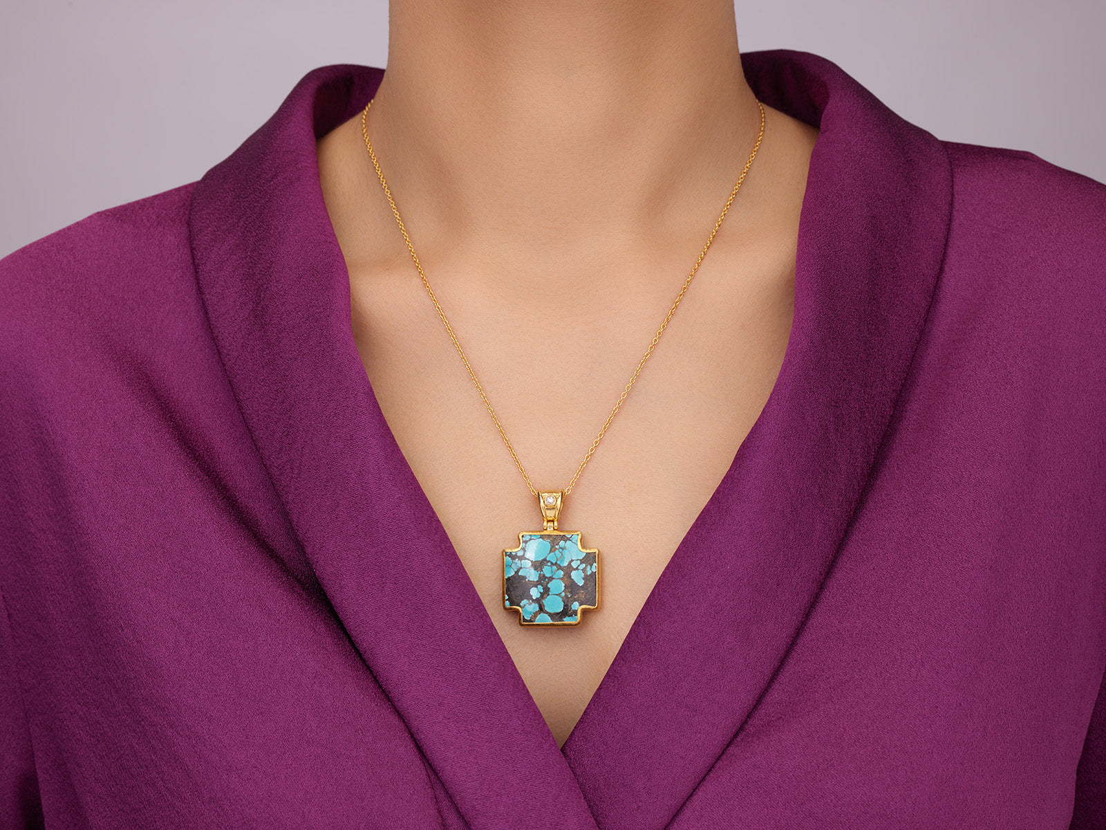 GURHAN Rune One-of-a-Kind 24K Gold Turquoise Pendant Necklace