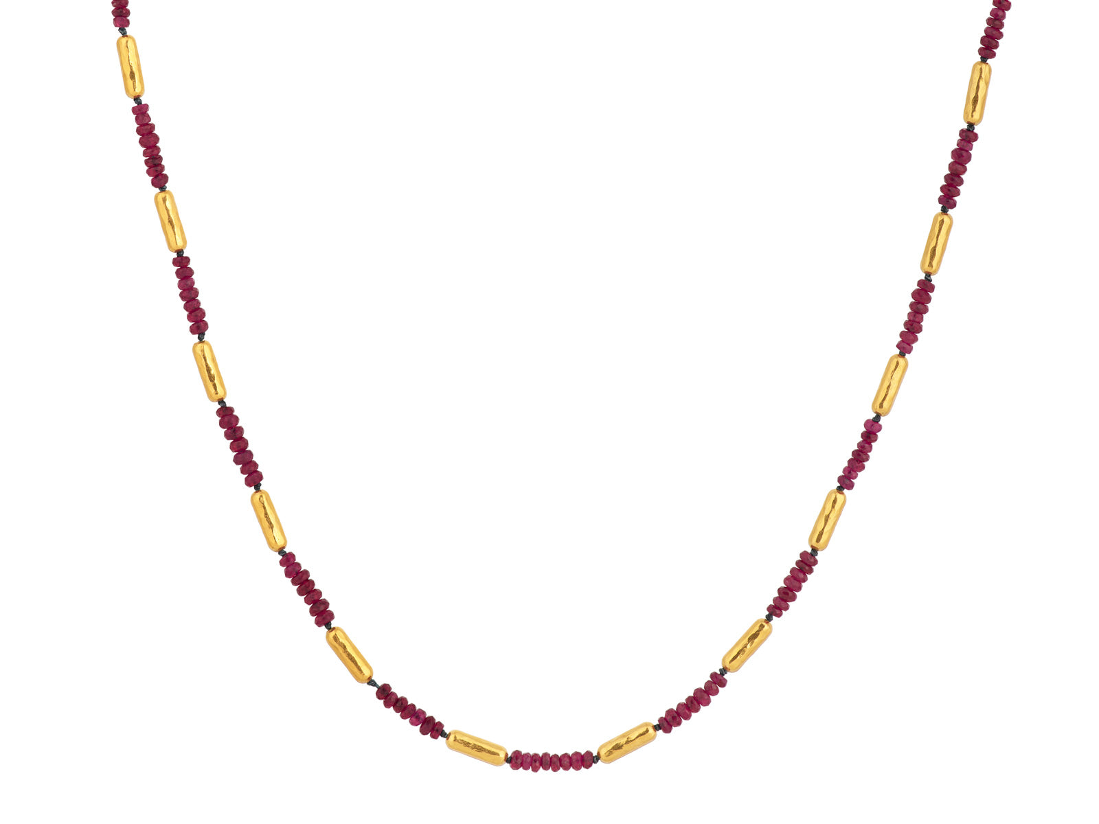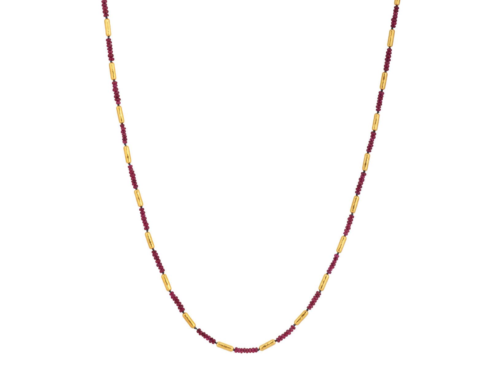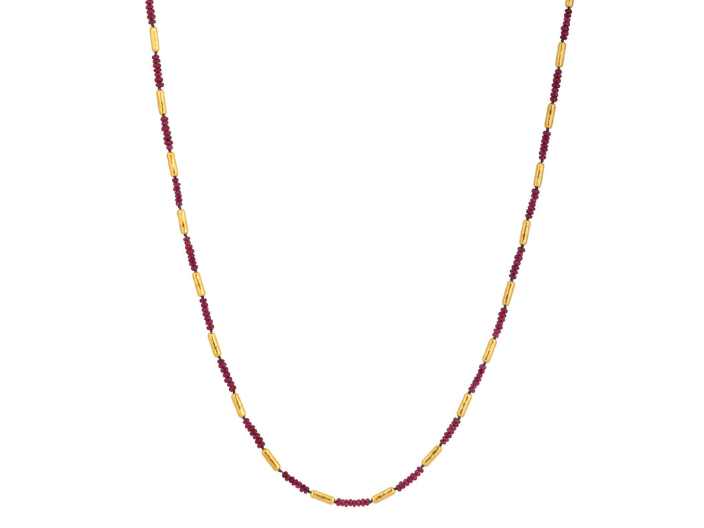 GURHAN Vertigo Gold Ruby Single-Strand Beaded Short Necklace, Thin Gold Tubes