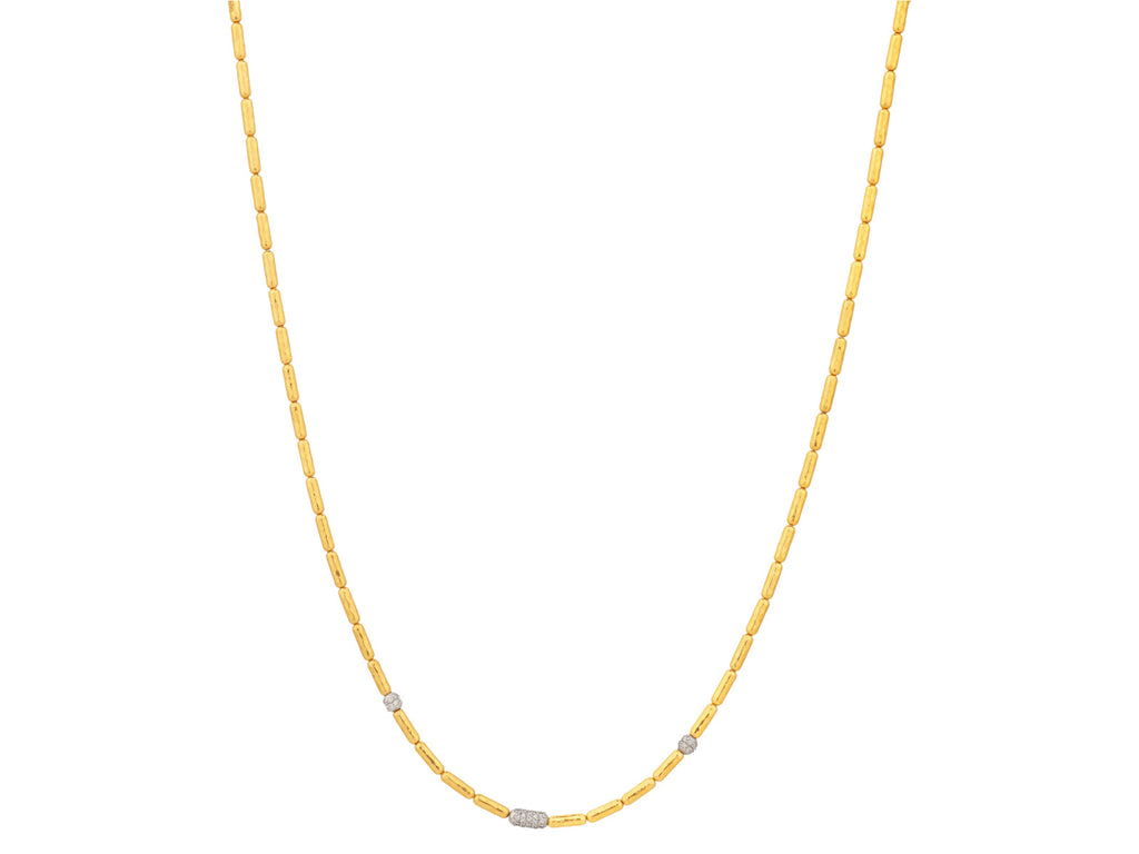 GURHAN Vertigo Gold Diamond Single-Strand Beaded Short Necklace, 4mm Wide Beads, 3 Pave Stations