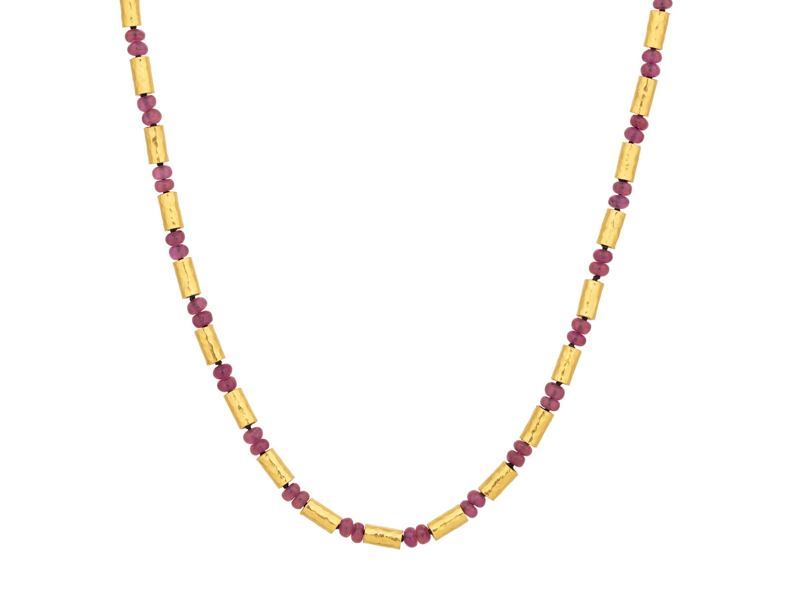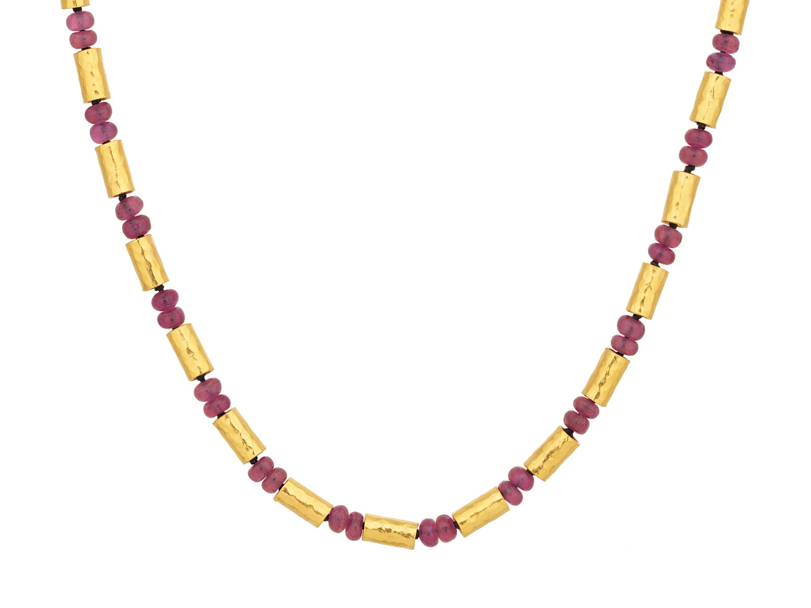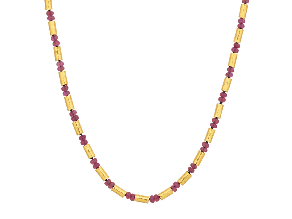 GURHAN Vertigo Gold Ruby Single-Strand Beaded Short Necklace, Gold Tubes and Cabochon Beads