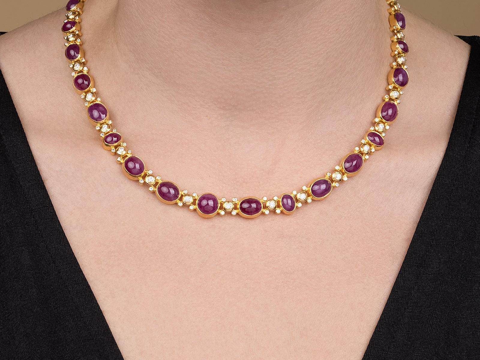 GURHAN Rune One-of-a-Kind 24K Gold Ruby Rivière Link Necklace, Butterfly Diamond Links