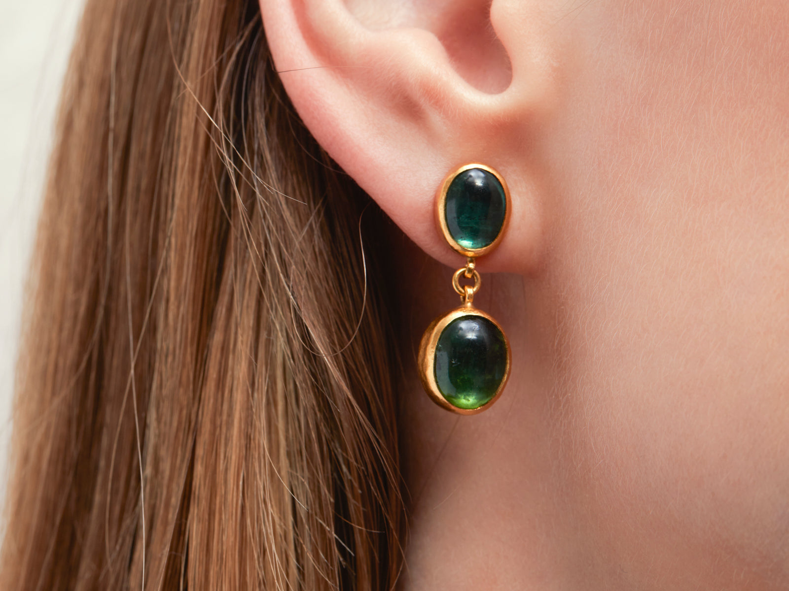 GURHAN Rune Gold Tourmaline Single Drop Earrings, Oval Stones, Post Top