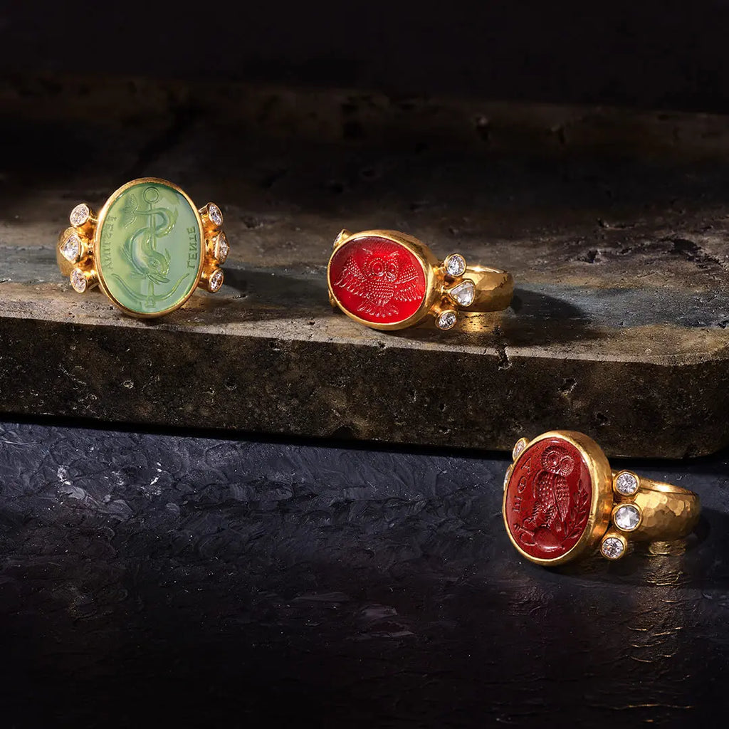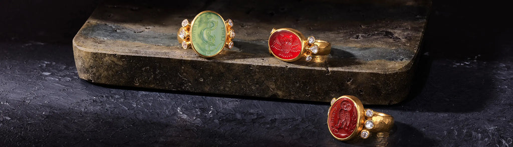 Inspired by the opulence and grandeur of ancient treasures and cultures, this curated collection offers a stunning array of high jewelry that is a testament to the artistry and craftsmanship of GURHAN. These antiquities featuring intricate micro mosaics, lava cameos and bronze elements evoke a sense of timeless elegance.